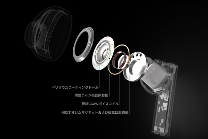 ベリリウムコーティングドームと柔性エッジによる複合振動板を用いた13mmダイナミック型ドライバーを搭載しており、伸びやかな高域とディテール表現、量感のある低域再現と低歪みを実現しているという。