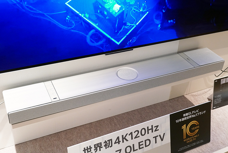オーディオブランドとして長年培ってきた独自の高音質技術を惜しみなく投入しており、ブランド独自の同軸ドライバーユニット「Uni-Qドライバー」をサウンドバーの形状に合わせ再設計して搭載。特に55型以上の大型テレビに適したモデルとしており、まさに今回の97インチテレビとの組み合わせにはうってつけとなった。