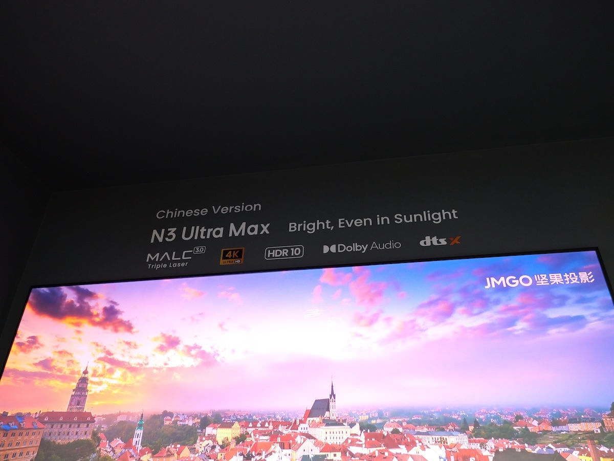 もうひとつの参考展示が、フラグシップ級の新製品「N3 Ultra Max」だ。今年中にグローバル展開する予定はないそうだが、こちらも日中に普段使いできる明るさをアピールしていた。展示写真の通り、そのエンジンは新世代「MALC 3.0」となるようで、明るさは4,350 ISOルーメンに到達、従来比で約35%も輝度が向上するという。