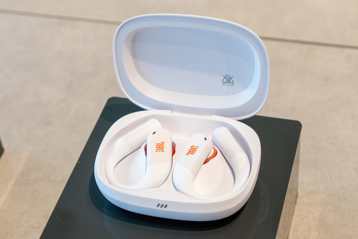 会場には多数のイヤホン・ヘッドホンが展示されており、オープンイヤー型イヤホンでは、「JBL Sense Lite」「JBL Tune Flex 2」といった現行モデルを展示。