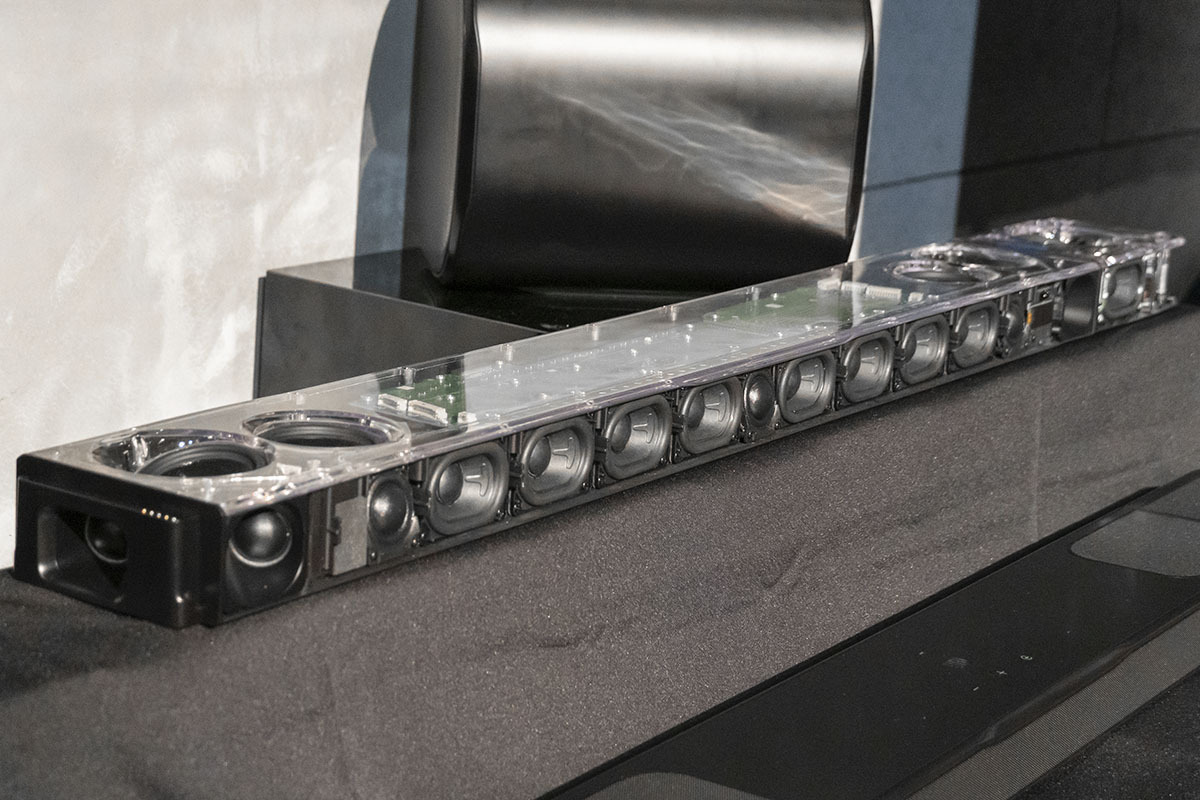 そのほか、いずれもユニットサイズを見直すなどして全体の出力を向上。同時に本体の厚さは約52mmというシリーズ随一の薄さを実現。大型テレビともスタイリッシュにマッチすると説明している。