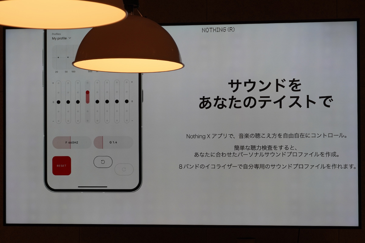 「Nothing X」アプリ上で、簡単な聴音テストで耳の形や好みに合った音の設定ができる「パーソナルサウンドプロファイル」機能を搭載。イコライザーを使って、より詳細な自分専用のプロファイル作成も可能だ。また、高音質コーデックLDACにも対応する。
