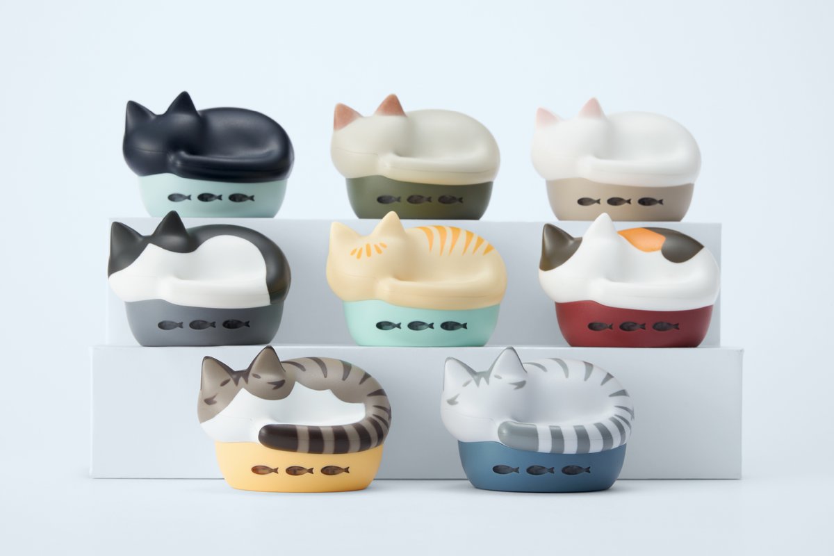 今年はじめ、ラインナップの第2弾としてチャトラ/ハチワレ/ミケが追加されたが、今回新たに、甘え上手の「キジシロ」、好奇心旺盛な「サバトラ」が追加された。第1弾から合わせて計8種類のラインナップとなる。