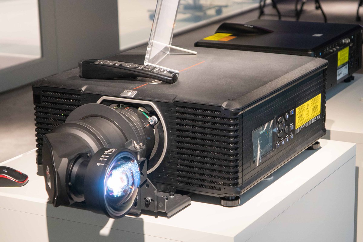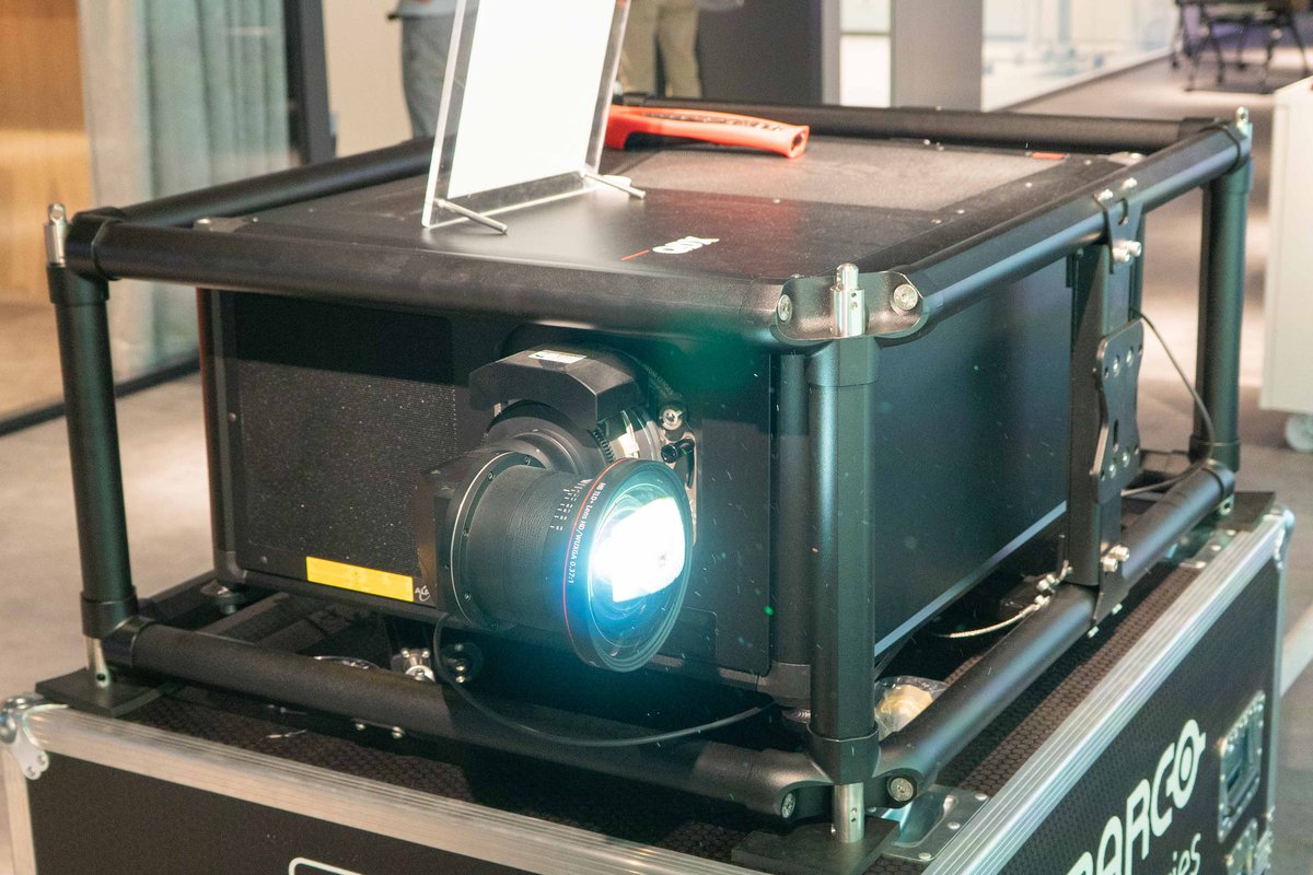 同カテゴリーに、業界のなかでも屈指のコンパクトさと軽量を実現した4Kプロジェクター「I600-4K15」も展示されている。本モデルは、0.8型DMDを1基搭載したモデルであり、14,000ルーメン(ISO)の輝度をカバーする。併せて、独自のBarco SuperShiftテクノロジーを搭載しており、遅延を最小限に抑えながら、よりスムーズな画像と鮮明なピクセルを実現している。
