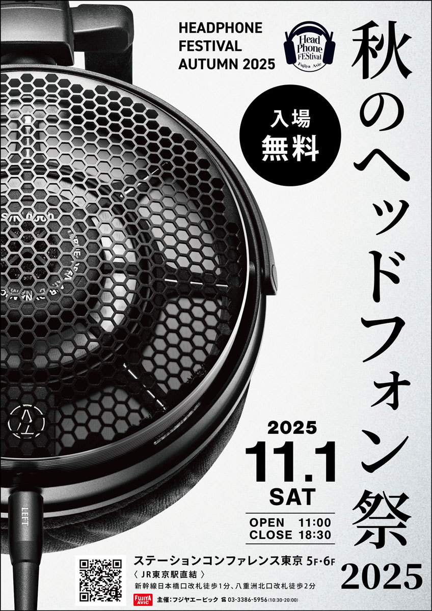 フジヤエービックは、ヘッドホンやイヤホンなどポータブルオーディオ関連ブランドが多数集う展示試聴イベント「秋のヘッドフォン祭 2025」を、11月1日(土)に開催する。会場は東京駅そばの「ステーションコンファレンス東京」5F/6F。
