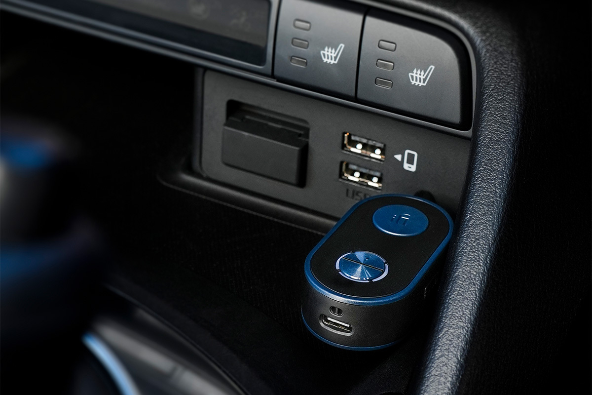 トランシーバー。入出力端子にAUX 3.5mmやUSB Type-Cを備え、車のオーディオシステムとシームレスに接続できるほか、飛行機や電車などさまざまな移動中のシチュエーションで高品質なBluetoothオーディオを楽しめるとしている。