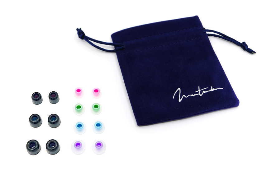 イヤーピースは、ブランド独自のシリコンイヤーピース「iSep02」4サイズ(S/MS/M/L)と、遮音性の高いフォームタイプの「iFep01」3サイズ(S/M/L)の2種類/計7ペアを同梱。好みや使用シーンに合わせて使い分けることができる。ほか、キャリングケースが付属する。