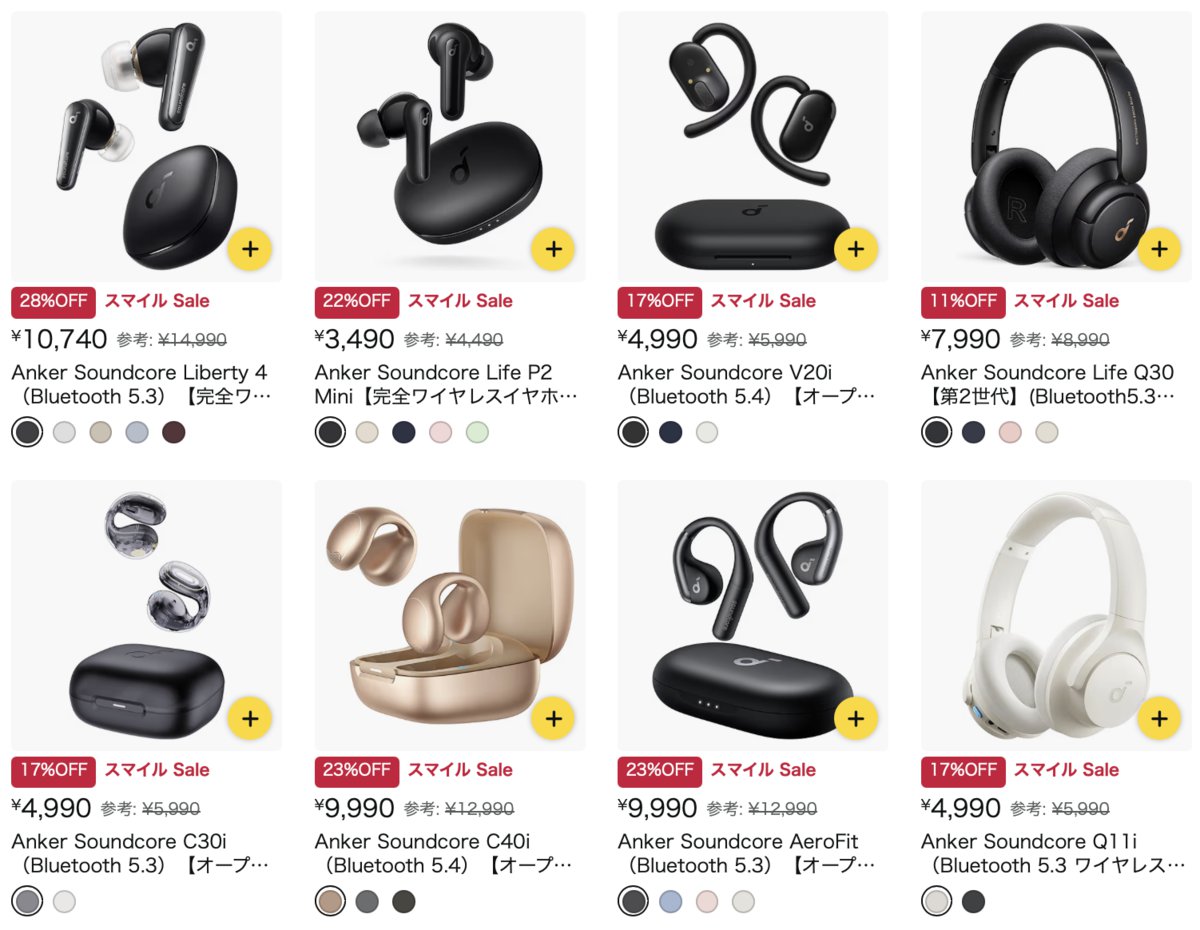 【AmazonスマイルSALE】Ankerの完全ワイヤレス/ながら聴き/BTスピーカーなどがお買い得!