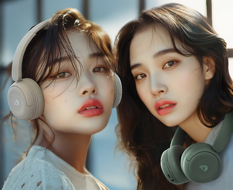 ファッションにコーディネートしやすいスモーキーカラーと、軽量なミニマルデザインを採用したBluetoothヘッドホン。カラーバリエーションは、スキントーンにも合わせやすいベージュ/カーキ、落ち着いた色調のホワイト/ブラックの計4色をラインナップする。