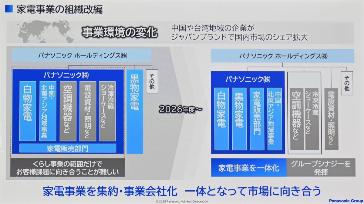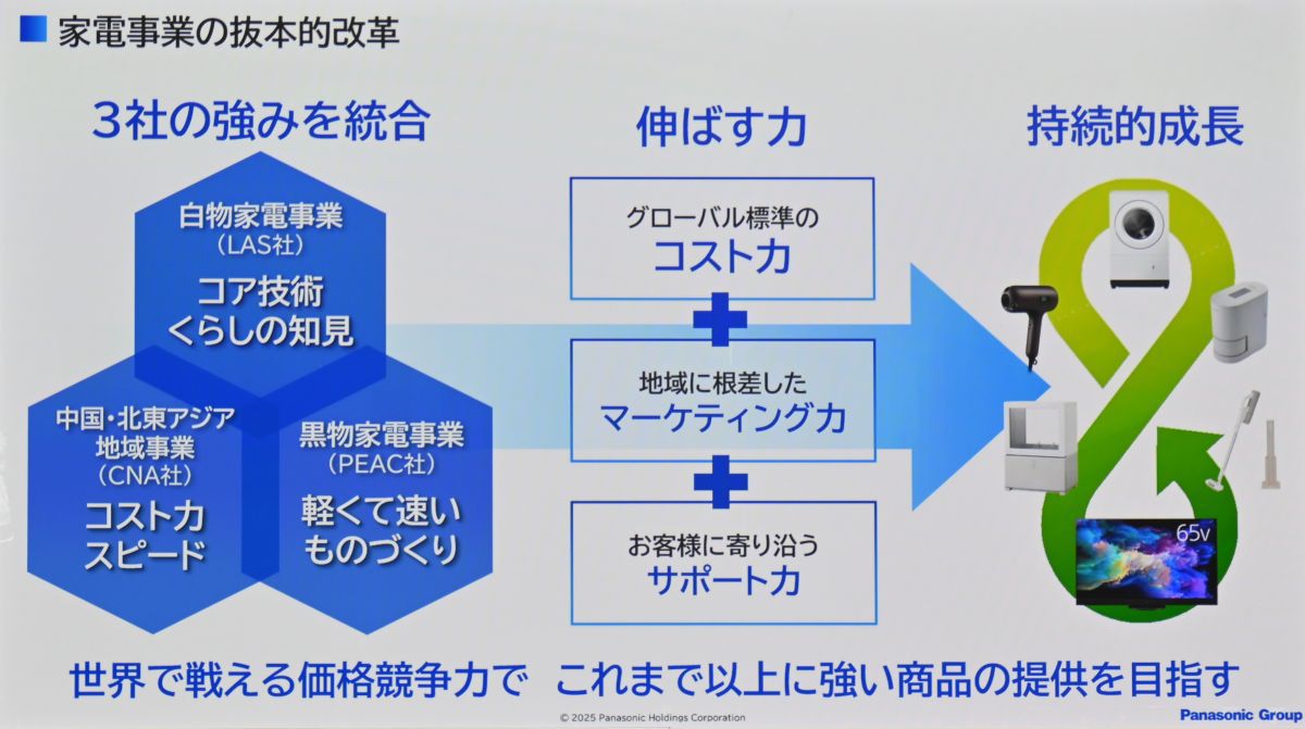 「現在のパナソニック株式会社は解消して、家電事業全体を新たなパナソニック株式会社としてまとめ、新たな体制で力強い家電事業へと今一度再生していきたい」と気を引き締めた。