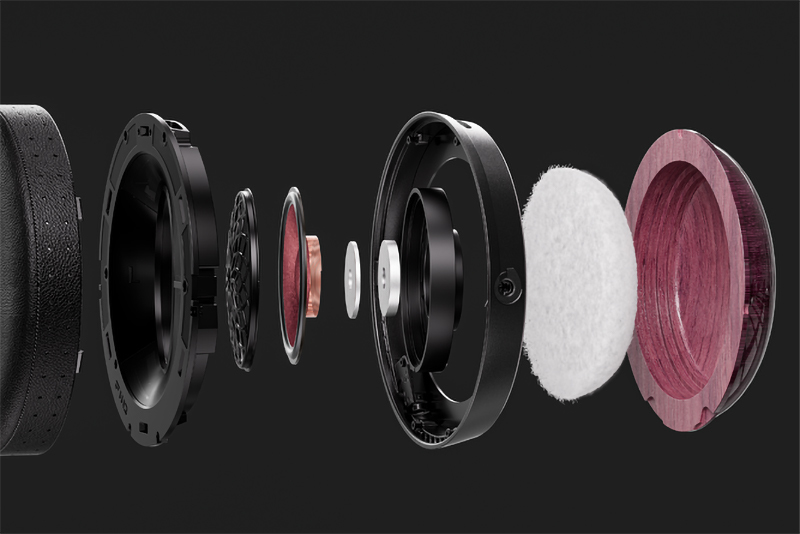 60mmダイナミックドライバーには「ウール複合バーチ材ナノファイバー振動板」を採用。ヨーロッパ寒冷地産の白樺の強靭な繊維に、軽量で硬いカーボンファイバー、柔軟なウール繊維をブレンドしたもので、独特の温かみある音色と、深く豊かでエモーショナルなサウンドを再現できるという。