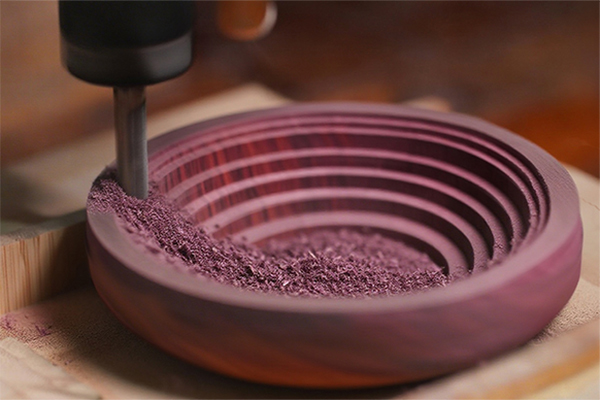 また、名前のとおり木材の断面は紫色で、経年にともない落ち着いた紫褐色へ変わっていくことも特徴。本モデルに使用するパープルハート材は、南米から中国に到着後、江蘇省連雲港にて高温釜による安定化処理を実施。その後、90日間の暗室熟成を行い、赤ワインのような深紫色に変化したものを加工している。