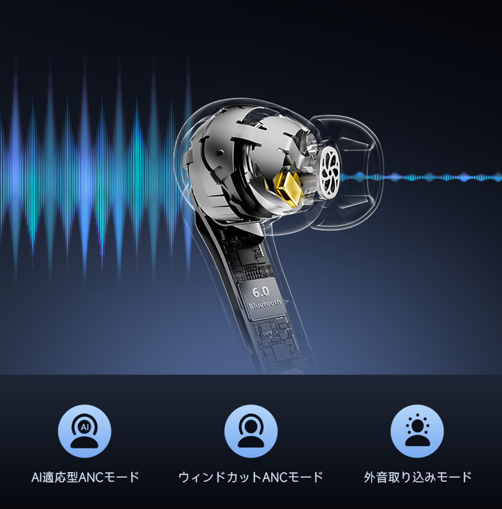 通話品質の面では、左右各3基、計6基のマイクを搭載。cVc 8.0およびAI技術を活用したアルゴリズムにより、環境ノイズを抑制しつつ声を明瞭に伝えられるとのこと。