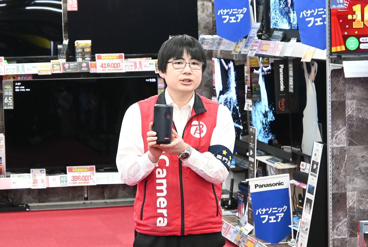 プロジェクター担当マイスター・瀬出井健斗氏は「350ml缶と同じコンパクトなサイズで、テレビとは異なる120インチの大画面が楽しめます。カバンに入れて持ち運べる大きさなので、家でも出かけた先でも楽しむことができます。ネット動画の多くのアプリに対応していますので、自分好みにカスタマイズして観たいコンテンツを楽しめる。大切な時間がより特別なものになります」と選定理由を解説した。