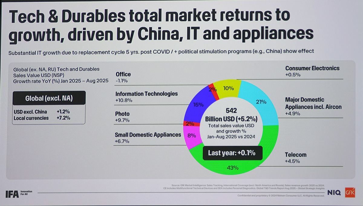 会見では、世界や日本の市場動向についても解説。2025年のテクノロジー/耐久消費財市場は中国や新興国に牽引される形で成長基調へ回復しているという。