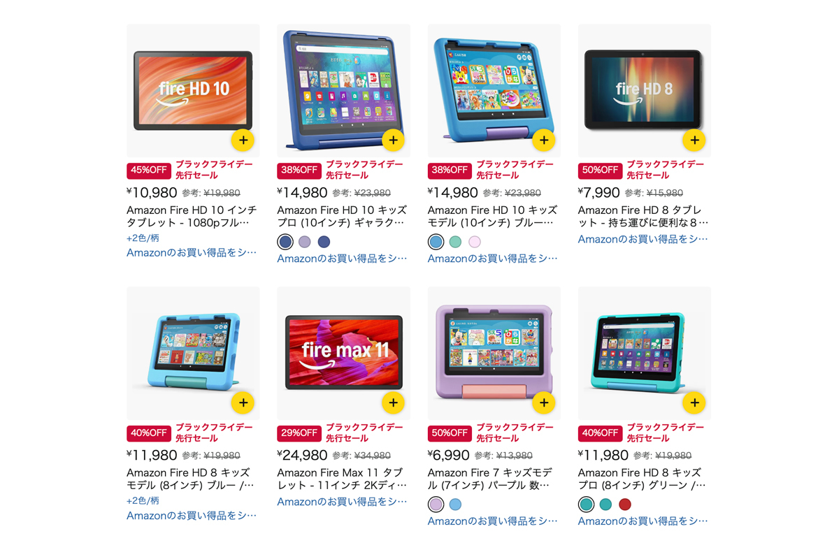 【Amazonブラックフライデー】Fireタブレット各種が最大50%オフ!最新モデルからキッズモデルまでお買い得に