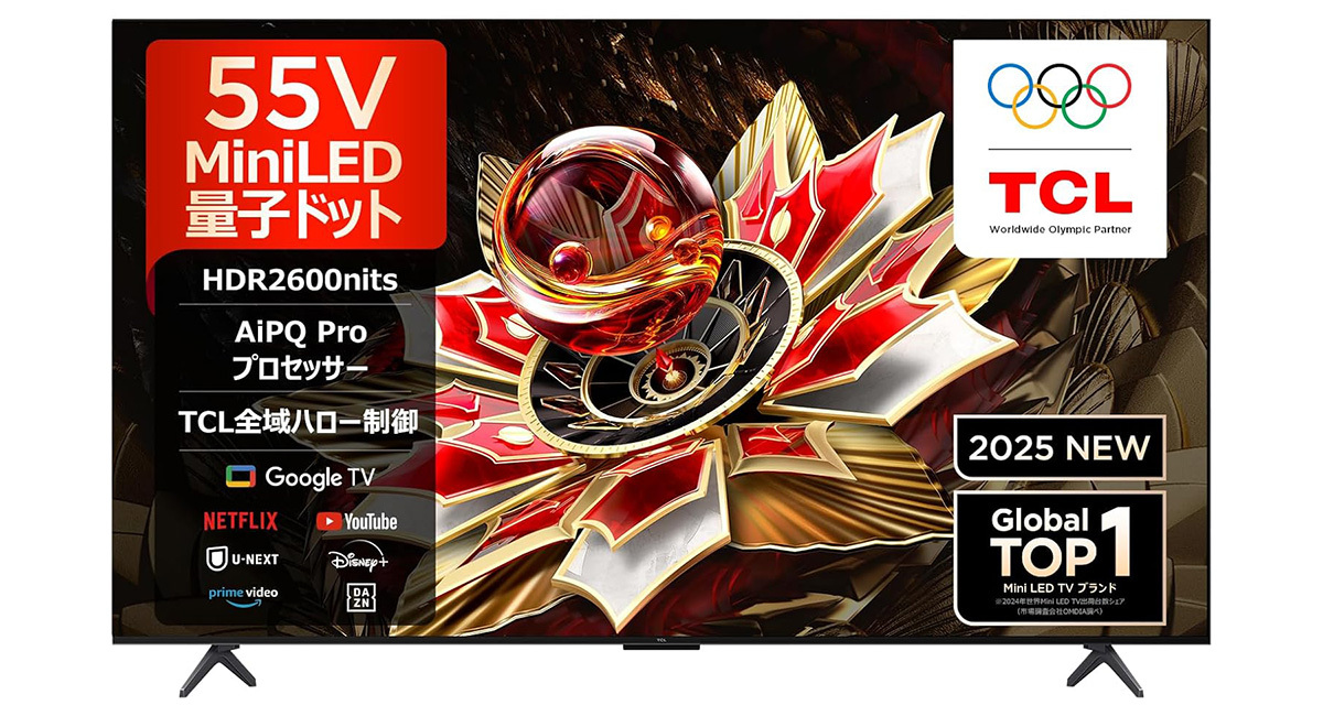 例えばTCL「Q7C」は55型モデルが通常価格より21%オフの109,800円に。量子ドット技術や倍速パネルを採用した最新2025年モデルのMiniLED 4Kテレビがセール価格で購入できる。