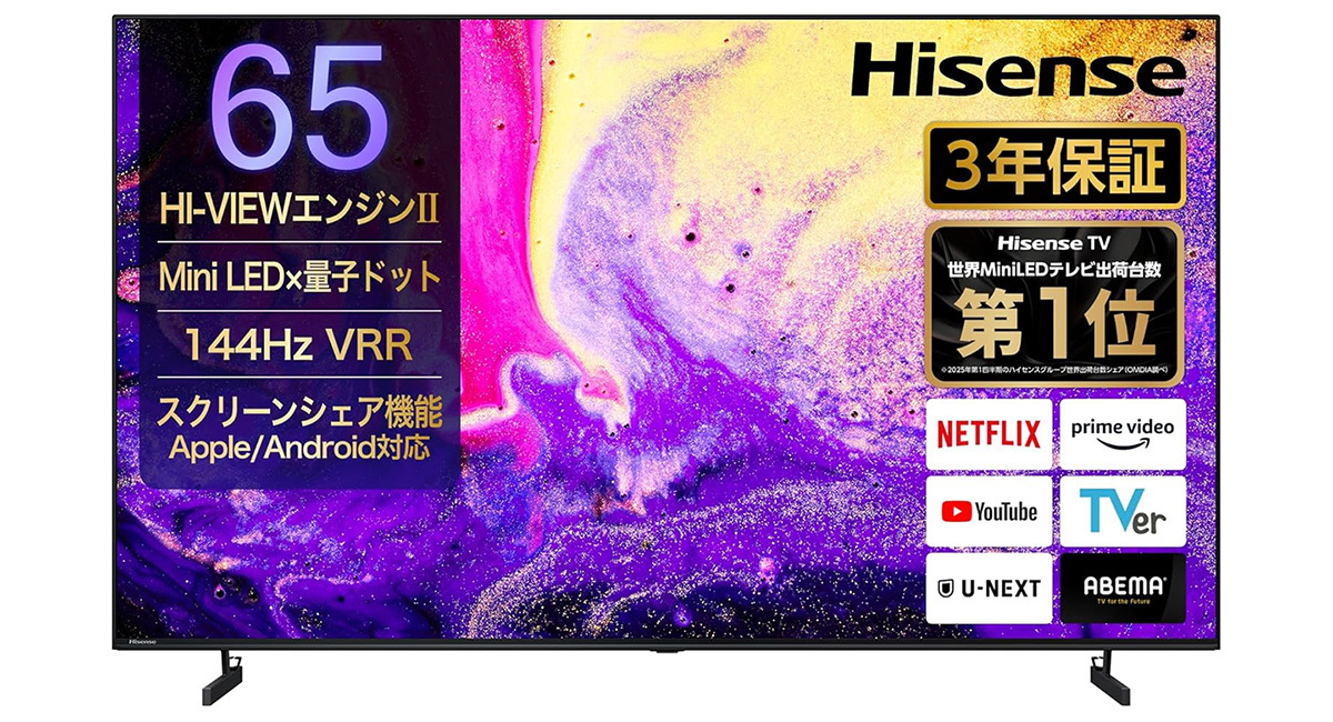 また、ハイセンス「E7N PRO」65型モデルが22%オフの128,000円になるなど、そのほかにも様々な製品がセールに登場中。テレビのような大型家電は元々の価格が高めであることもあって、セール時の割引金額も大きい。こうした機会にチェックしてみるのもよいのではないだろうか。