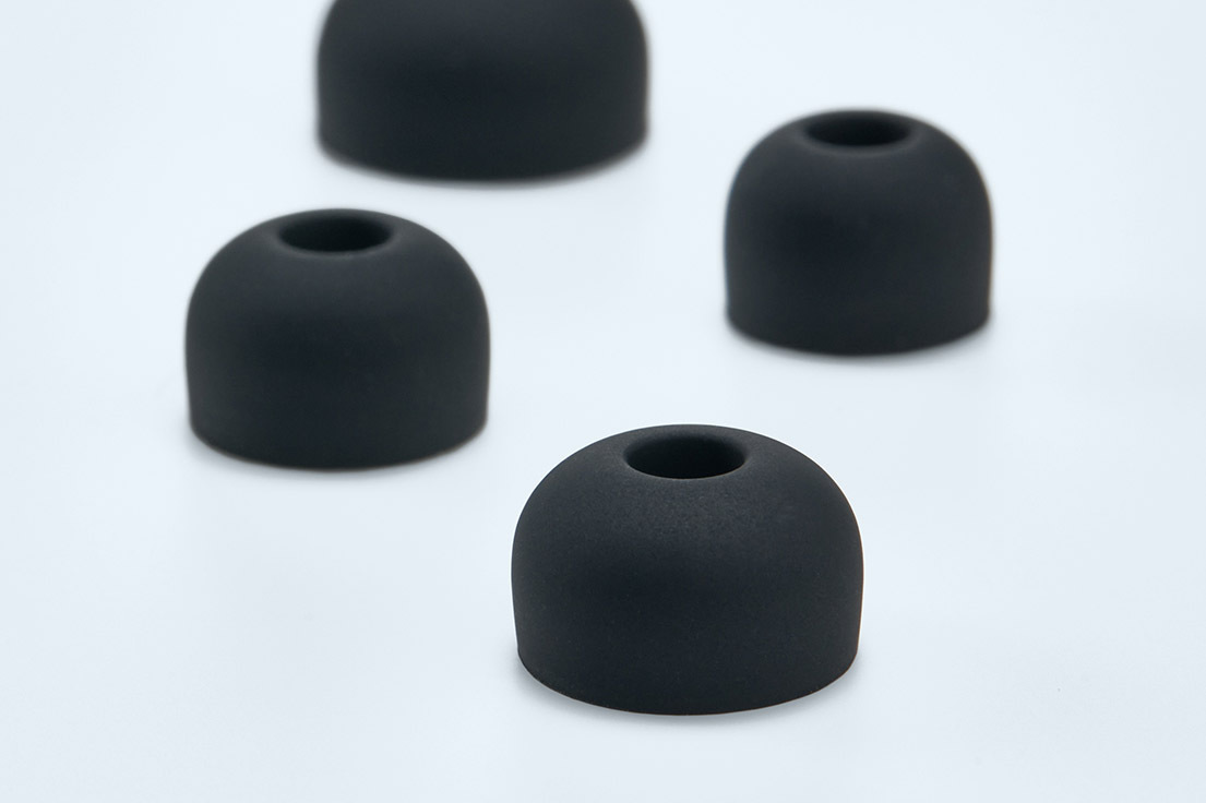 「ディープマウントイヤーピース」は、先端部に向けて膨らむ独自形状を採用することで、耳の奥の広いエリアでしっかりフィットさせ、低音の豊かさと装着安定性の向上を図ったイヤーピース。この度発売する2モデルは、完全ワイヤレスイヤホンのノズル形状や充電ケースに最適化したショートサイズの専用設計を採用する。