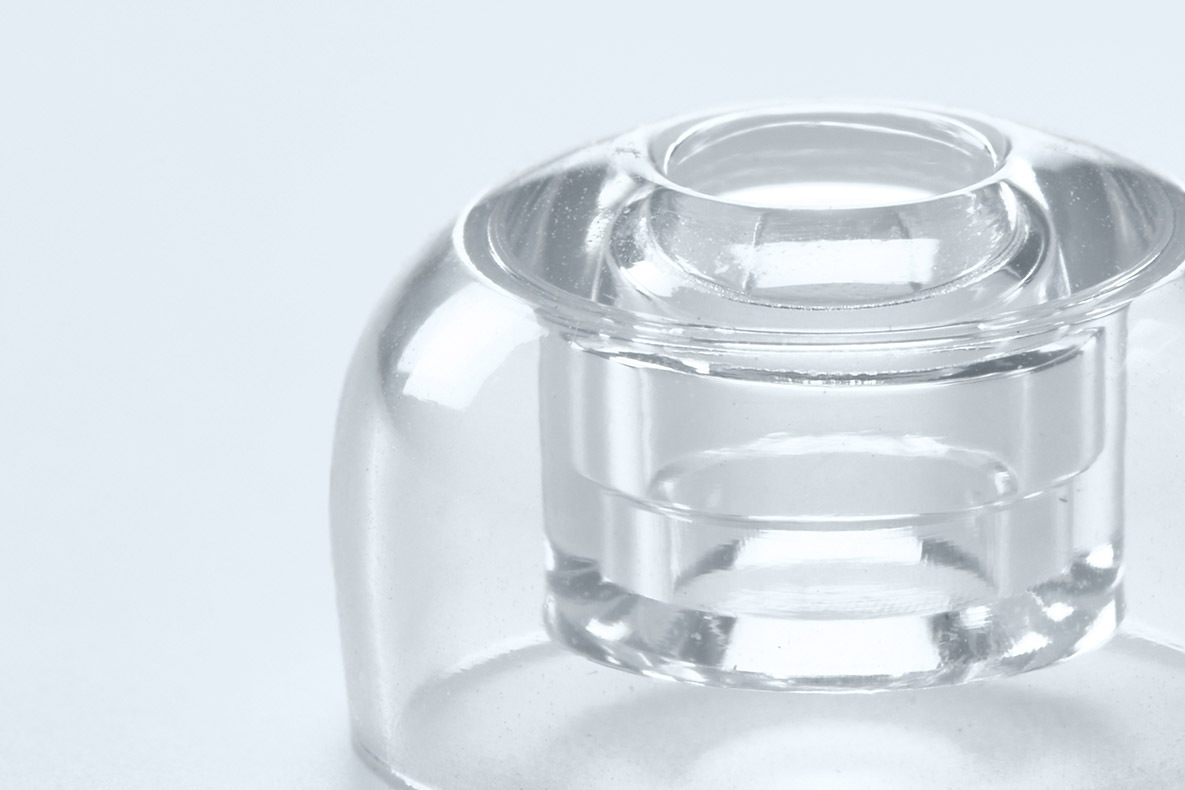一方、クリアカラーのHP-DME2-TWSは、国内化学メーカー製の液状シリコーンゴム(LSR)を採用したモデル。LSRは柔軟性に優れる素材で、引き裂き、へたり、経年劣化なども生じにくいことが特徴。その柔らかさと肌に吸い付くような滑らかな質感により、「今まで聴こえなかった音、感じられなかった音」まで知覚できるとアピールしている。また米FDAや独LFGBの基準に則った、医療品に近い安全性も備えるため、デリケートな肌質でも安心して着用できるとのこと。