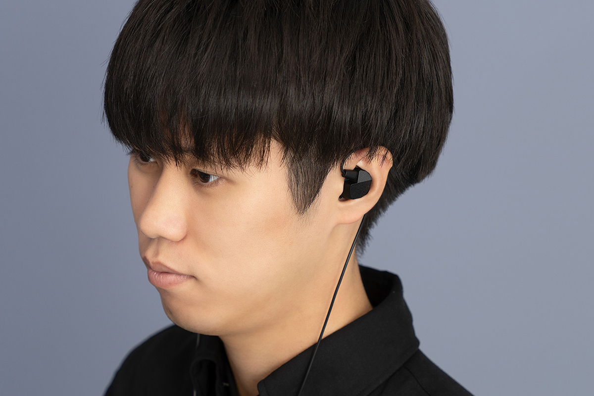 筐体設計は、同社イヤホン “Bシリーズ” をベースとして、より優れた装着感を追求。有機的で大きな面で耳に接する形状ではなく、耳の3点で保持する形とすることで耳への圧を均等化し、まるで個々人にあわせてカスタマイズしたかのような圧迫感のない装着を目指したという。
