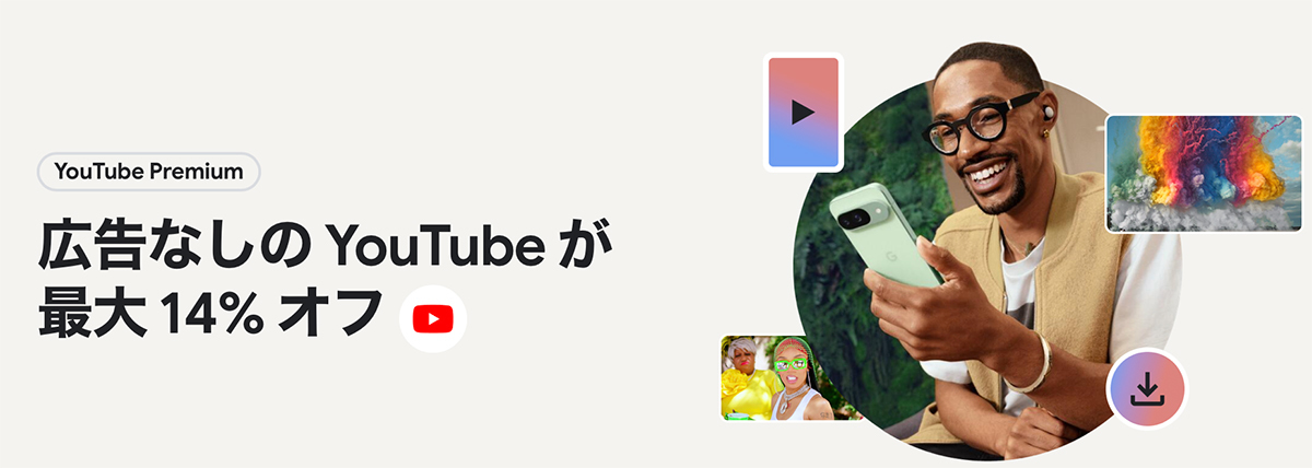 対象となるのはGoogle Oneのプレミアム(2TB)以上のプラン加入者で、YouTube Premium個人プランを併せて契約すると通常月額1,280円のところ、14%オフの月額1,100円で利用できる。