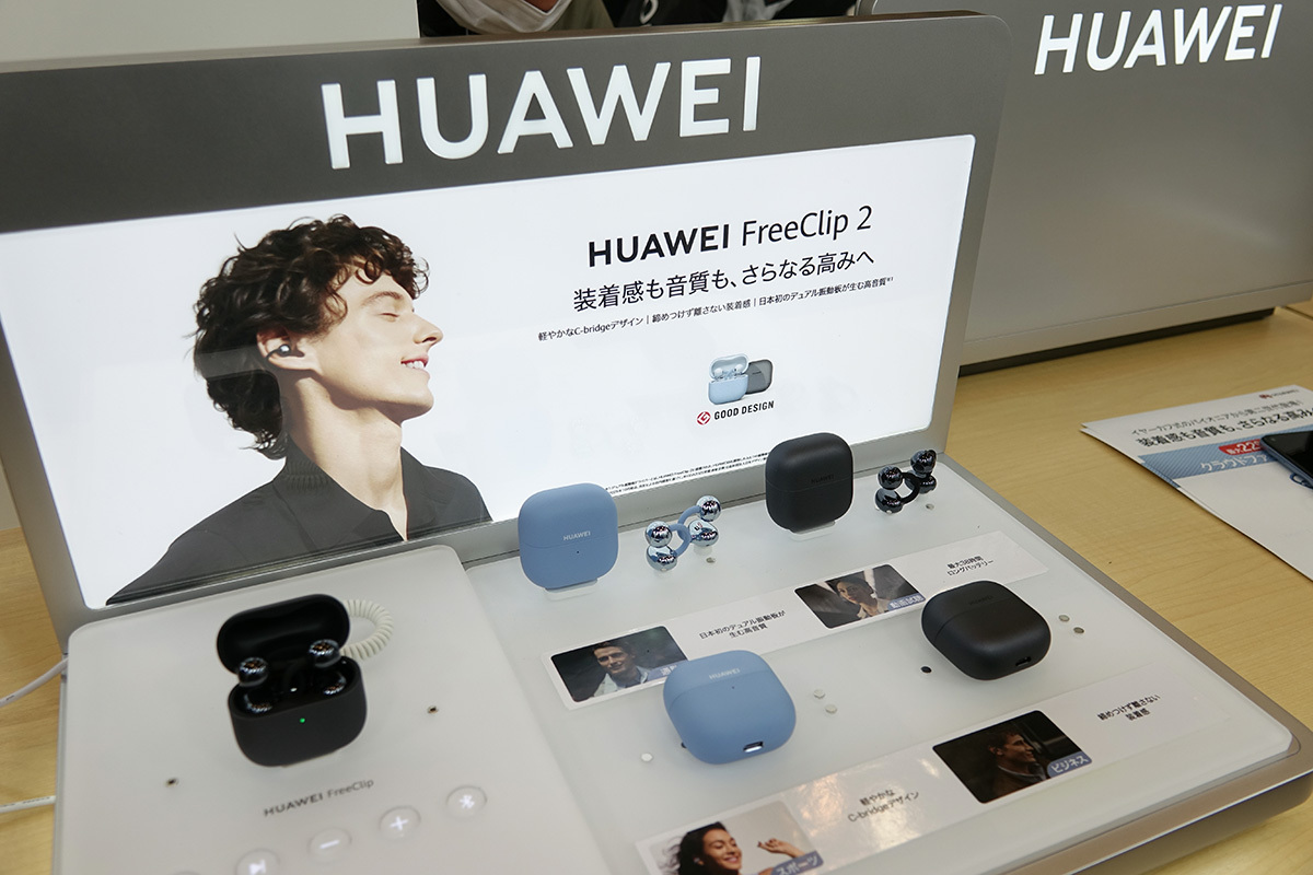 ファーウェイは、イヤーカフ型ながら聴きイヤホン「FreeClip 2」を中心に展示。クラウドファンディングを開始したばかりの新製品をいち早く試すことができるようになっている。