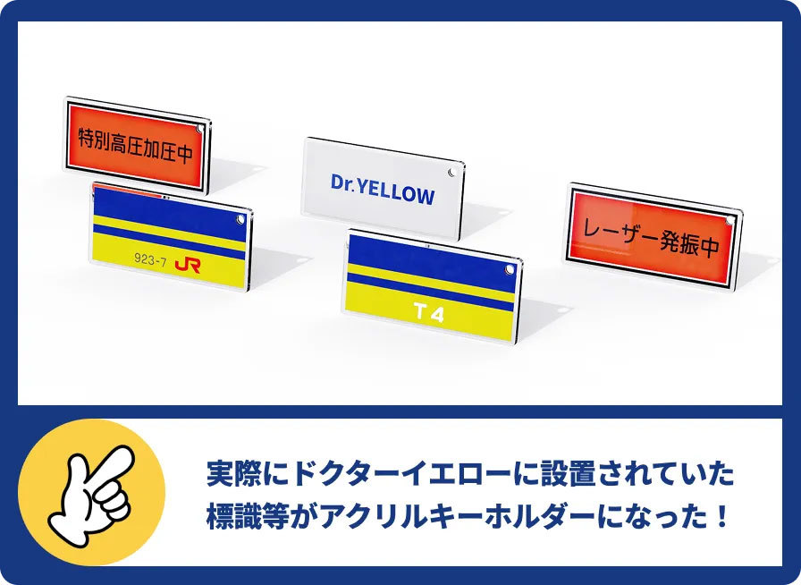アクリルキーホルダーは、ドクターイエロープランがランダム1種、ドクターイエローコンプリートプランが全種セットとなる。