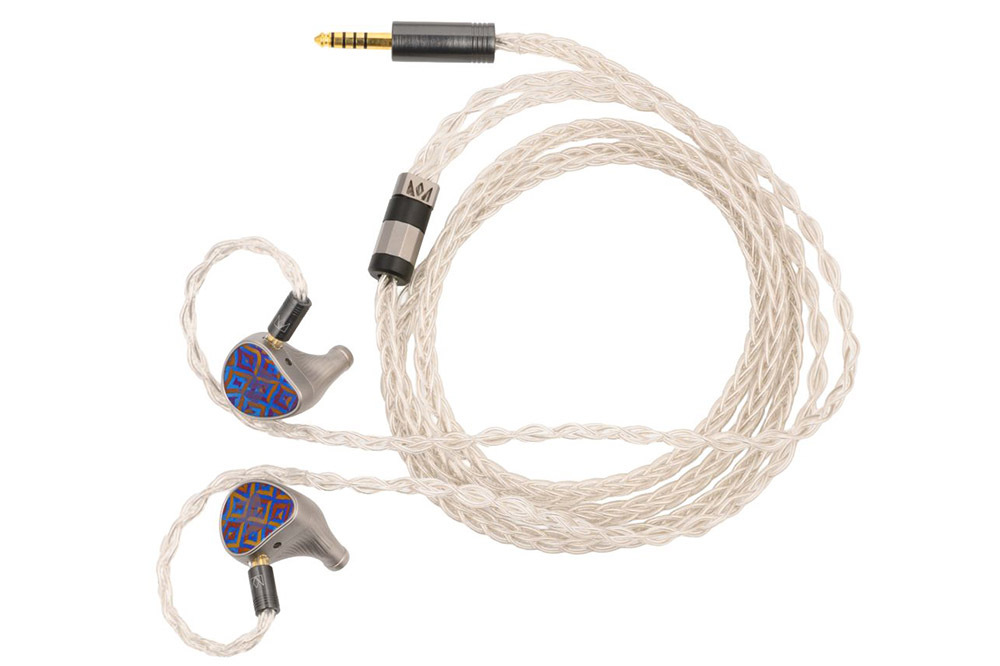 0.78mm 2pinコネクターによるケーブル交換に対応。付属ケーブルはパラジウムメッキ4N純銀と6N OCC銀導体を用いた8芯構造で、速度、明瞭さ、解像度の追求を掲げている。再生機器側端子は4.4mmバランスプラグ(ストレート形状)を装備し、ケーブル長は約1.2m。
