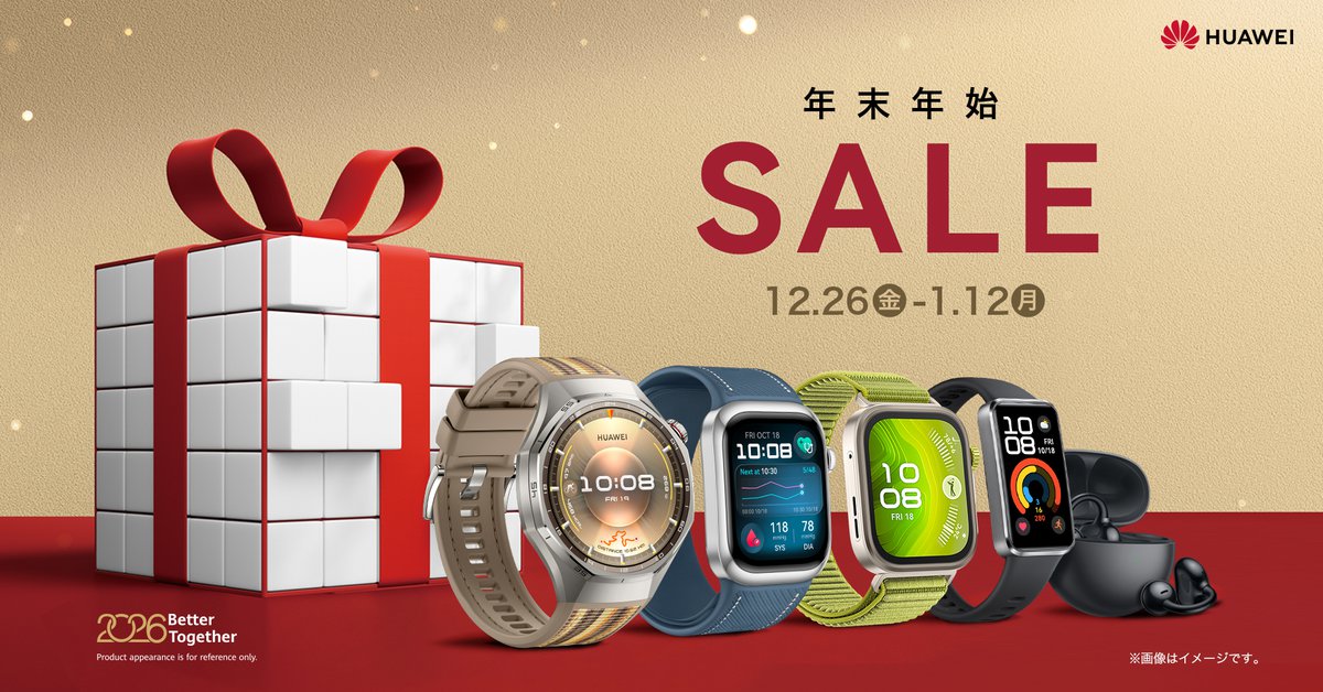 ファーウェイ・ジャパンは、 12月26日から2026年1月12日(月)までの期間、多数の同社製品を対象にした年末年始限定セールを開催する。