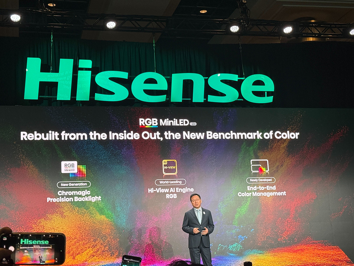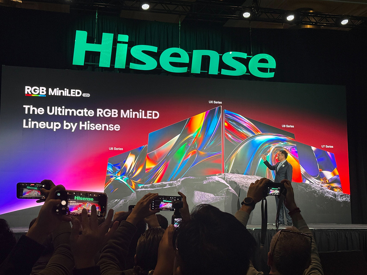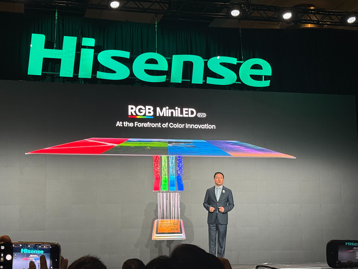 ハイセンスは、現在アメリカ・ラスベガスにて開催中のCESに出展。現地時間1月5日の10時よりメディア向けのプレスカンファレンスを開催し、新たなベンチマークとしてディスプレイ技術「RGB MiniLED evo」を発表した。また、その技術を搭載したフラグシップモデルとなる116インチテレビ「116UXS」も披露した。