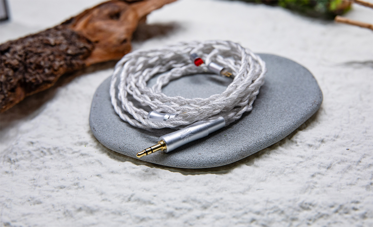 0.78mm 2Pinコネクターによるケーブル着脱に対応。付属ケーブルは、導電性と耐久性が高く、微細な音楽信号の変化も忠実に伝送可能だという銀メッキSP-OCC単結晶銅導体を採用する。付属ケーブルのプラグは付け替えも可能で、3.5mmシングルエンド/4.4mmバランスプラグを同梱する。ケーブル長は約1.2m。