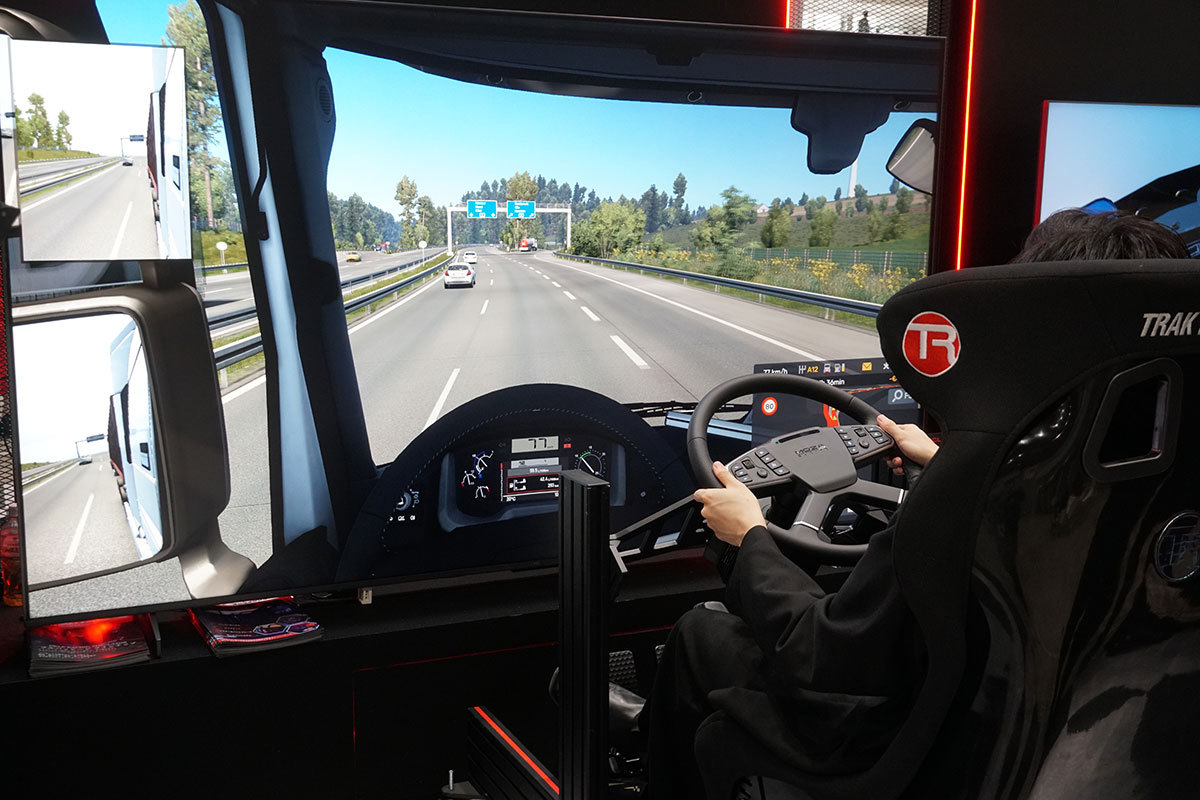 試遊コーナーでは、同社の4KミニLED液晶テレビ “C6Kシリーズ”と、DELE(デーリー)社が取り扱うMOZAブランドのレーシングシミュレーター用機材を組み合わせた体験システムを設置。