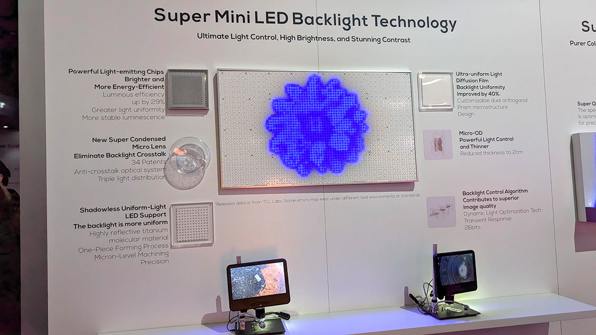 このふたつの合わせ技で、RGBバックライトより遙かに色再現が良いという。これにより「長寿命化、色再現性能とピーク輝度の向上、安定した広色域表示、より精密な輝度制御を実現」(TCLの資料)するとしている。