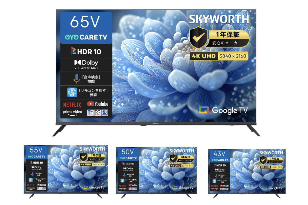 スカイワースジャパンエレクトロニクス合同会社は、SKYWORTH(スカイワース)ブランドのテレビ3シリーズを、Amazon/楽天市場にて販売開始した。