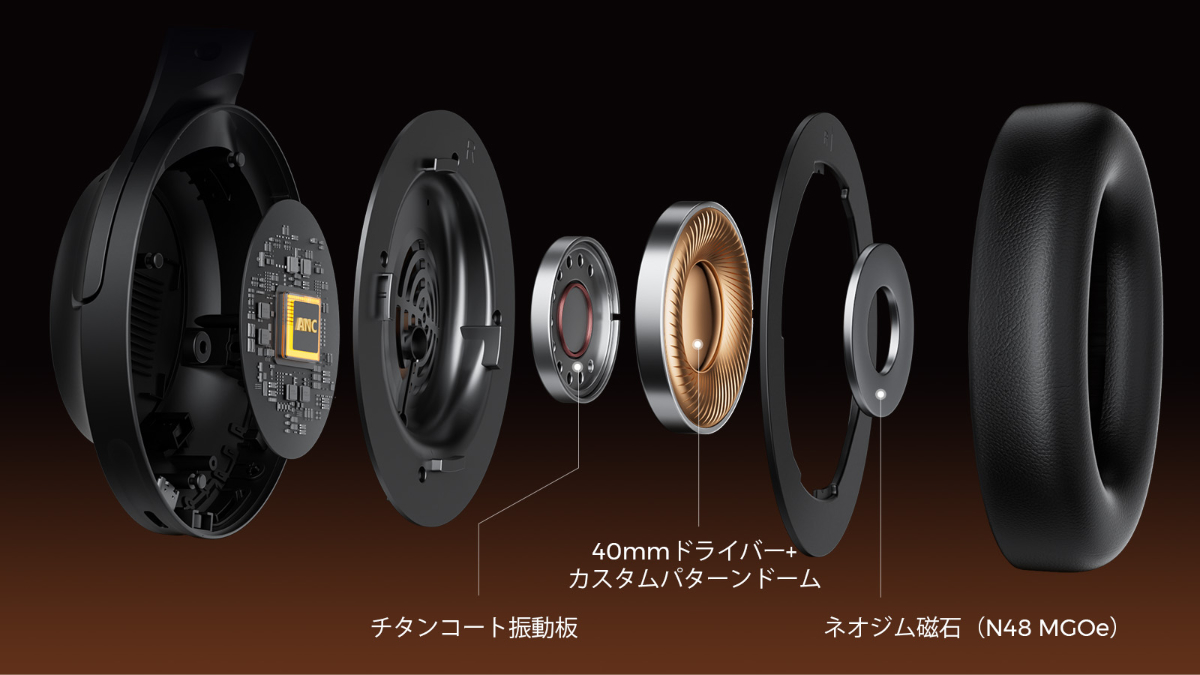 音質面では、カスタム設計のドーム構造を設けたφ40mmチタンコーティング振動板ドライバーを採用。トランジェント性能の向上やネオジウム磁石の採用により、俊敏な立ち上がり/立ち下がりと微細なニュアンス再現を狙ったとしている。