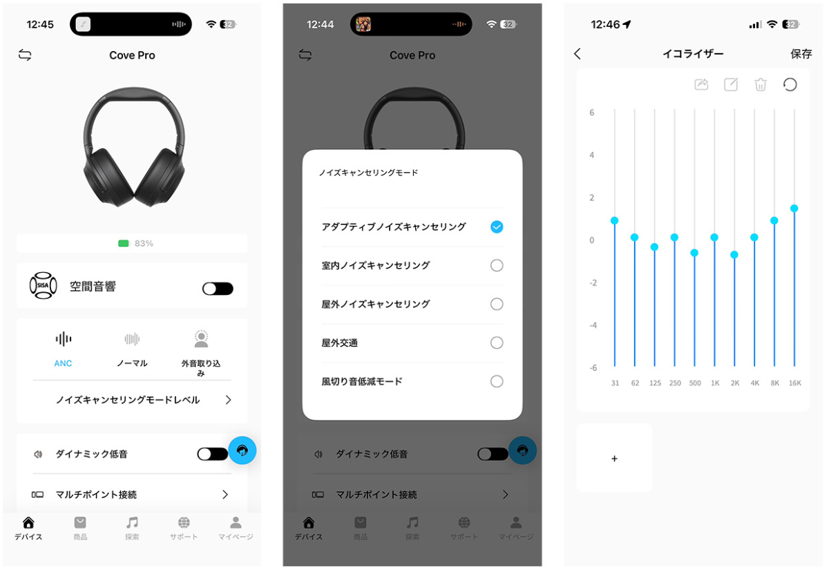 マルチポイント接続にも対応するほか、専用アプリ「SOUNDPEATS」では10バンドEQや聴感テストに基づく最適化、空間オーディオ/LDACのオン・オフ設定、タッチ操作のカスタマイズ、ファームウェア更新などが行える。