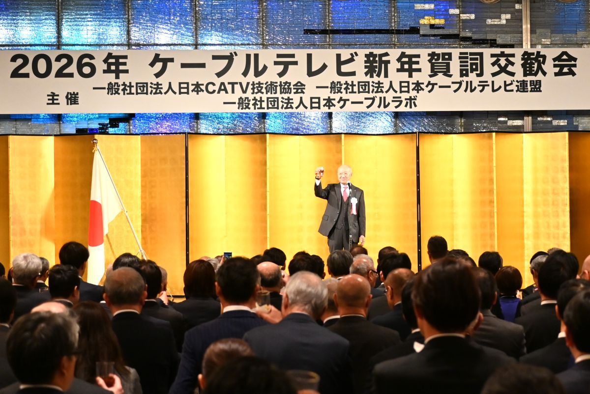 一般社団法人日本CATV技術協会、一般社団法人日本ケーブルテレビ連盟、一般社団法人日本ケーブルラボのケーブルテレビ業界3団体主催による「2026年ケーブルテレビ新年賀詞交歓会」が開催された。全国各地のケーブルテレビ事業者、番組供給事業者、メーカー、施工会社など業界関係者、省庁、国会議員など多くの関係者が集った。