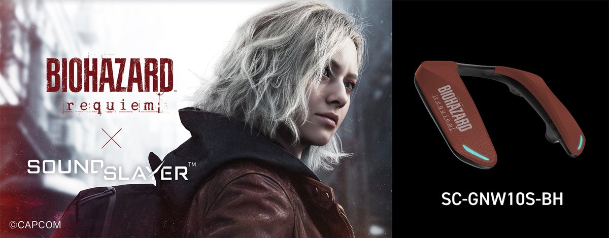 「SC-GNW10S-BH」は、パナソニックのゲーミングネックスピーカー「SC-GNW10S」と、カプコンから2026年2月27日に発売予定のゲーム『バイオハザード レクイエム』との公式コラボレーションモデル。