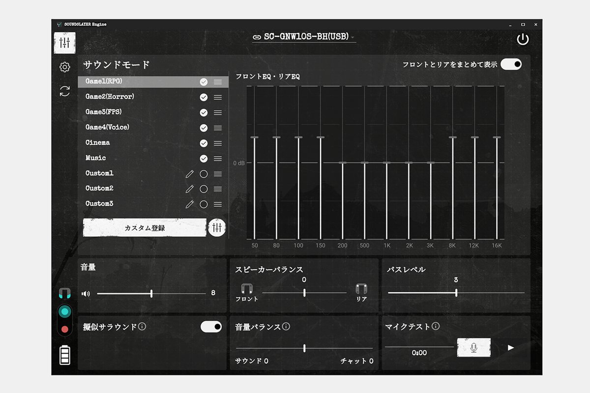 ベースモデル同様にサウンドモードやイコライザー設定はカスタマイズ可能で、遊ぶゲームタイトルやジャンルに応じて最適化が可能となっている。