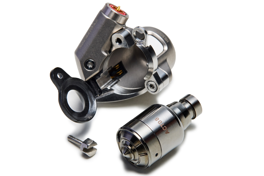 ドライバーユニットを内蔵する音響チャンバーと機構ハウジング部を分離したモジュラー構造「Acoustune Capsule Technology(A.C.T)」は、今回 “Ver 2.0” へとアップデート。機構ハウジング部にはチタン/SUS/カーボンファイバーブロックを使用し、音響チャンバーはベリリウム銅合金を使用した新開発の「ACT08」を搭載する。
