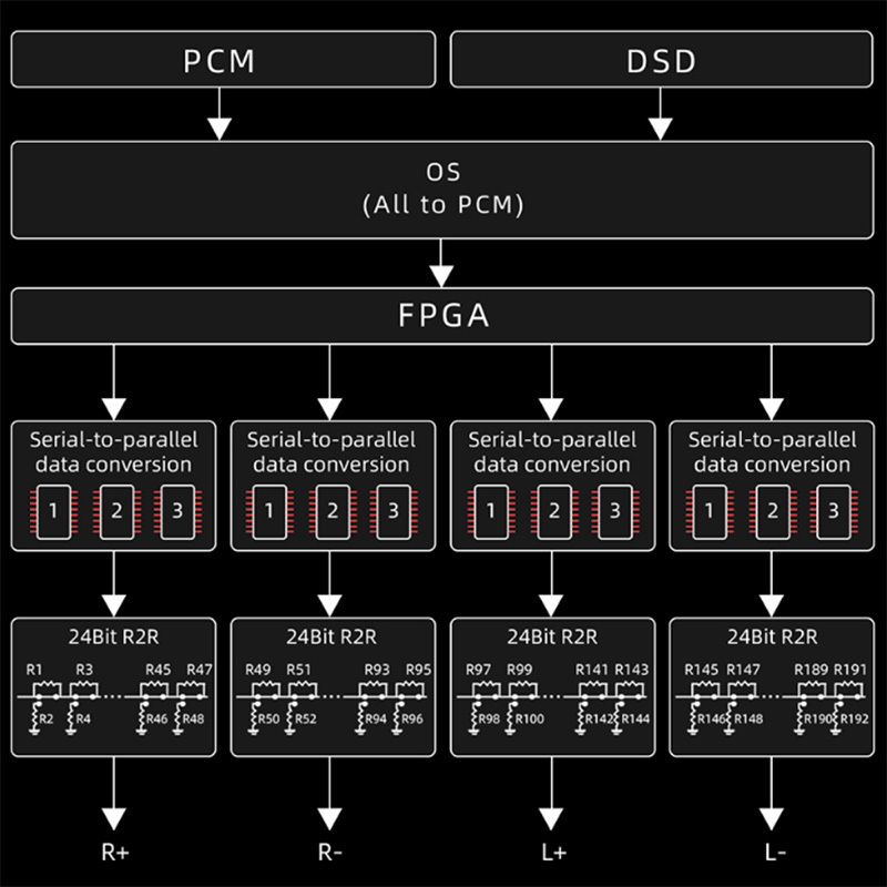 R2R DACは、合計192個の精密薄膜抵抗器で構成されており、ヴィンテージ機器のオーディオ特性を再現するという。これによって2000年代前後のCD再生全盛期を彷彿とさせる音質を実現したと説明している。