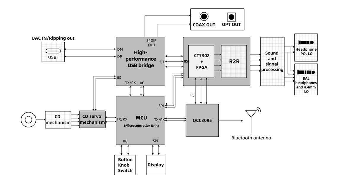 CDサーボ/USB DAC/R2Rモジュール/Bluetoothモジュールというコアコンポーネントを、MCU(マイクロコントローラユニット)によって制御・連携。これらコアコンポーネントの進化により、あらゆる機能・性能がグレードアップし、「同カテゴリー、同クラスの製品を凌駕した」とアピールしている。