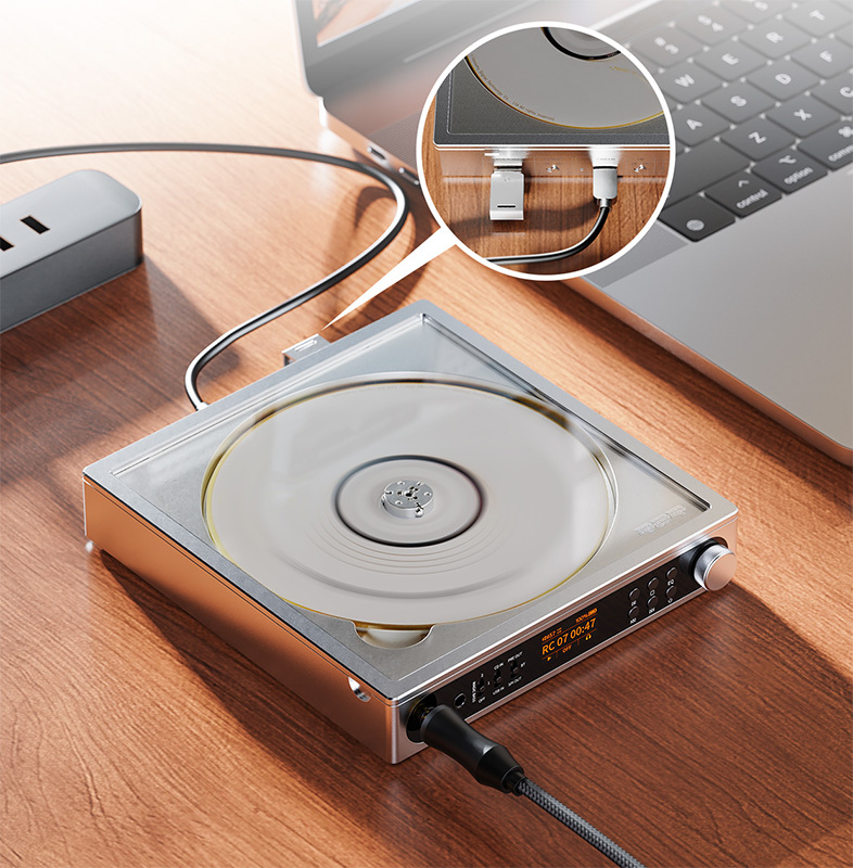 CDの再生は、ディスクの位置合わせにセルフリバウンド式のスチールボール設計を採用して、スムーズなディスクの出し入れを実現するとともに傷つきやすさの低減も果たしたという。