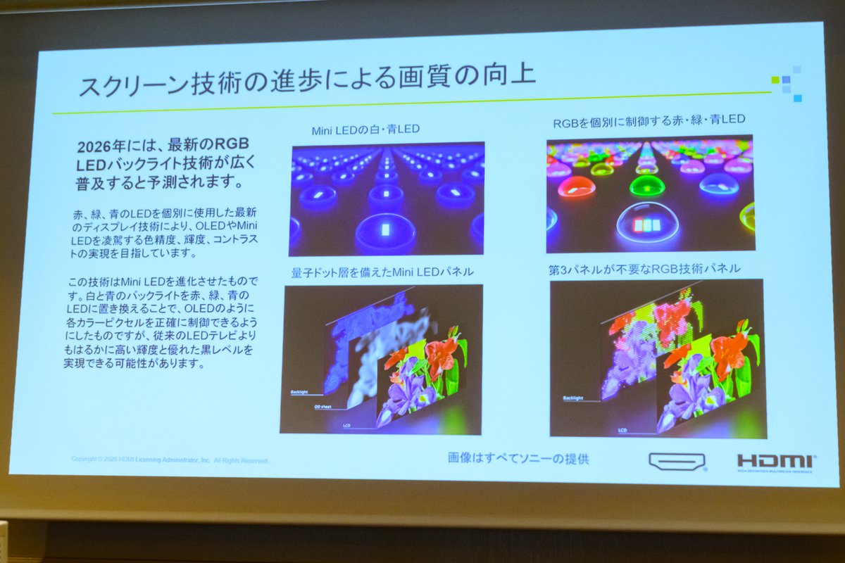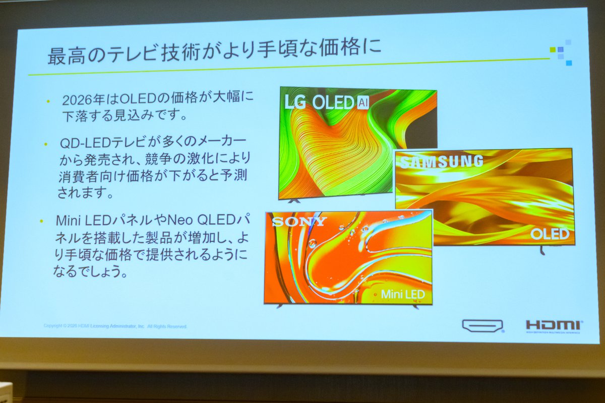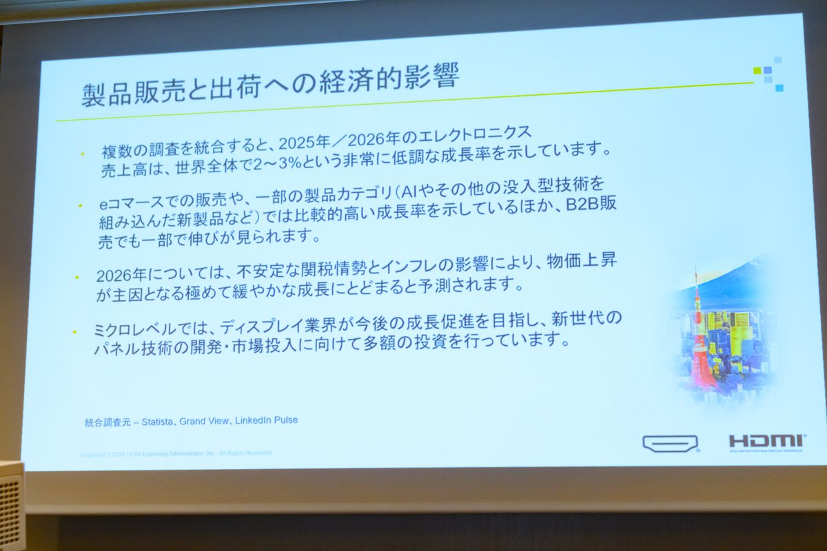 こうした動きが2026年の市場を牽引していくことになるのではないか、とトバイアス氏はまとめ、HDMI技術においても96Gbps広帯域の活用や、伝送安定性の強化、HDMI認証プログラムの改善などに取り組み、将来的な新しいテクノロジーをサポートすると締めくくった。