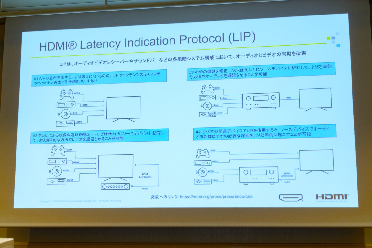 HDMI2.2のもうひとつのアップデートが、「Latency Indication Protocol(LIP、リップ)」という技術のサポートだ。
