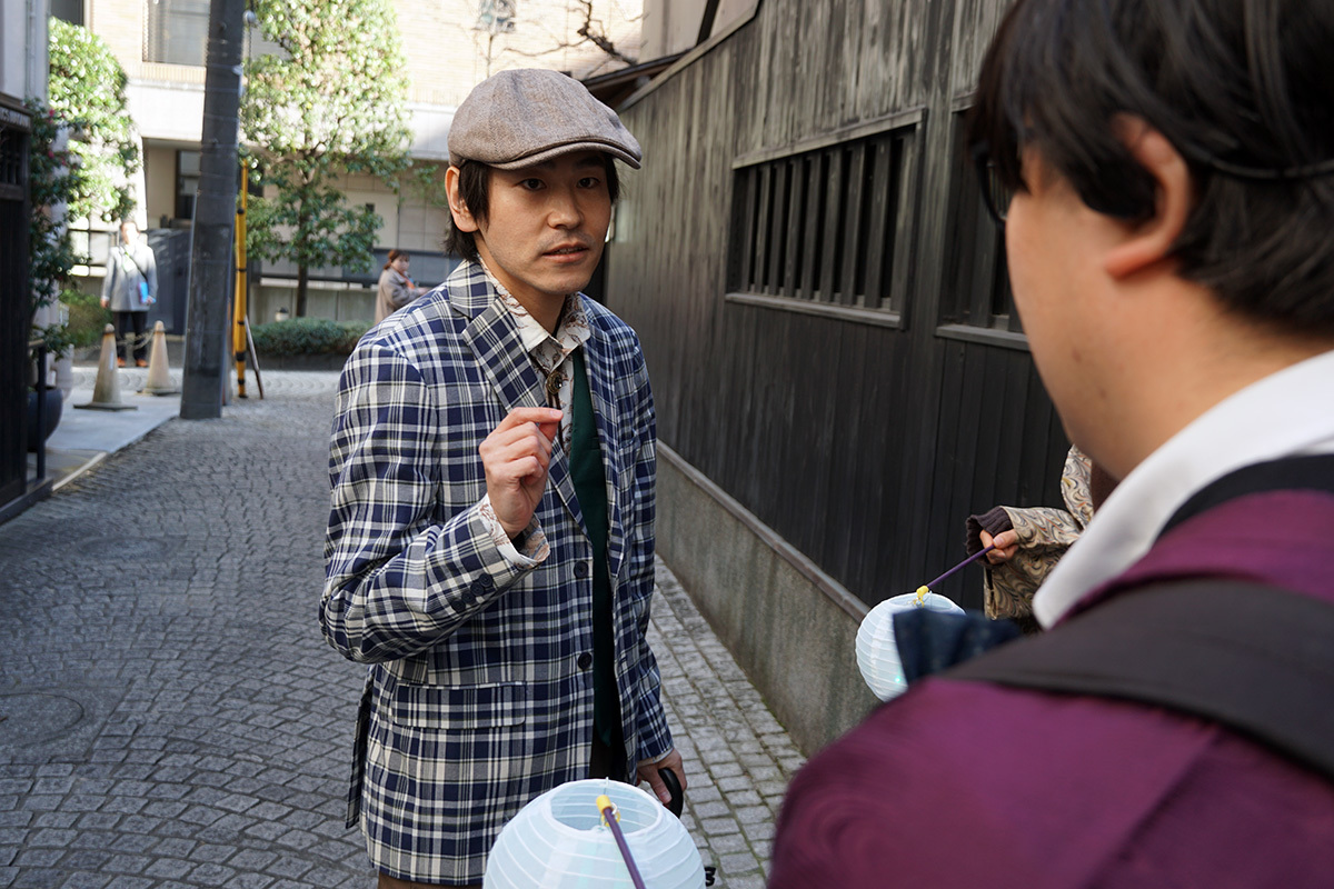 本作では、参加者は俳優が演じるキャラクターに出会い、ときに会話を交わしながら物語が進行するが、体験の“導線”を担うのがロケトーンの音声だ。進行の節目では音声によるルート案内が入り、参加者はそれに従って細い路地や坂道を進む。移動中にもナレーションは流れ続け、ストーリーを進行させると同時に、自身が物語の主人公になったかのような没入感を得られる構成となっている。