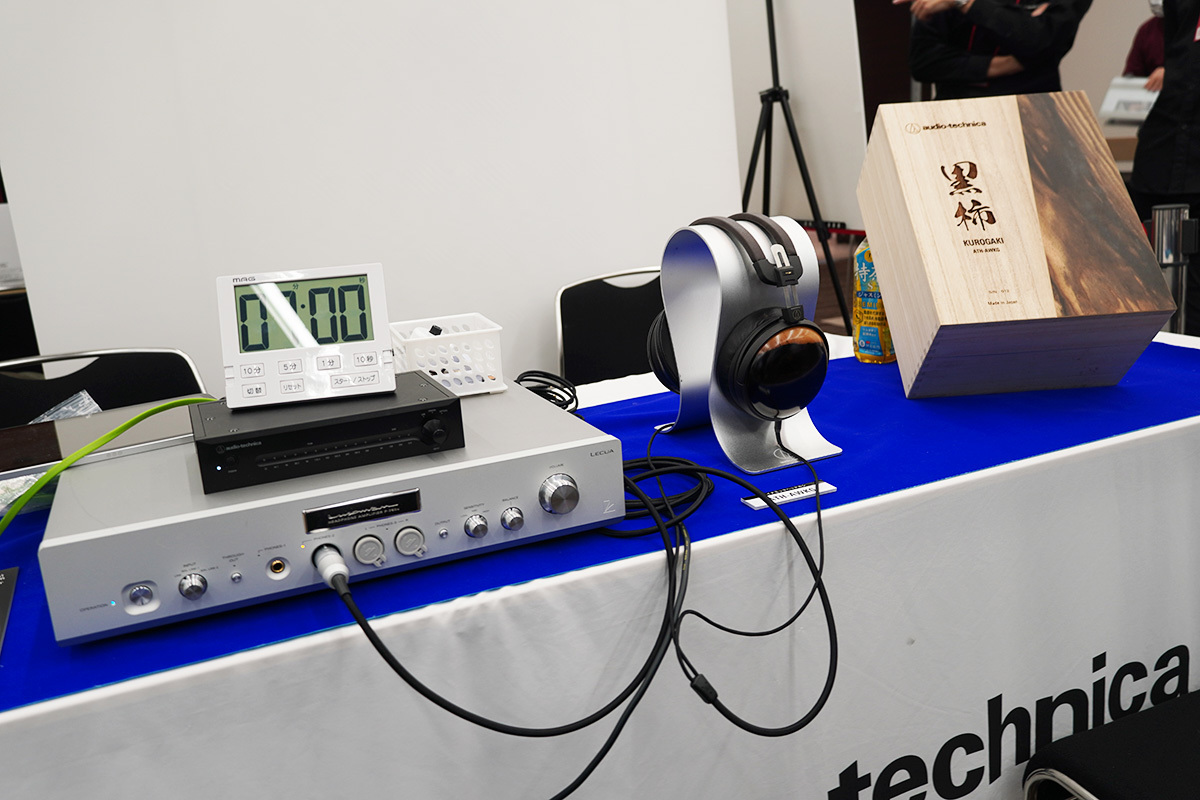 また、上記とは別に、希少木材 “黒柿” を採用した密閉型ヘッドホン「ATH-AWKG」の試聴コーナーも用意した。