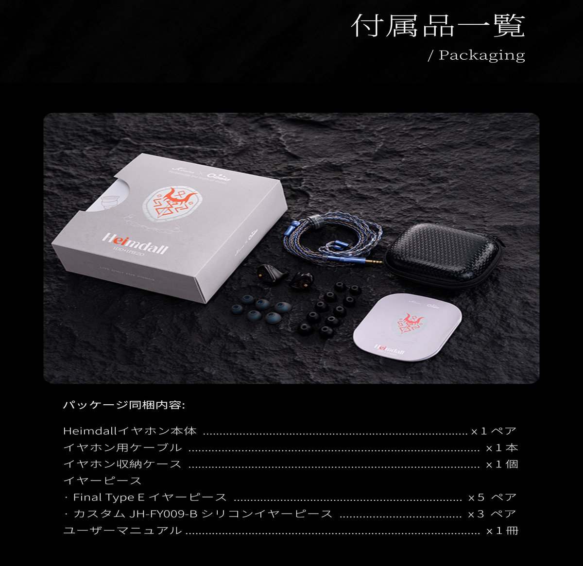 Heimdallは、KineraとO2Aid(オーツェイド)のコラボレーションにより誕生したIEM。シェルおよびケーブルのデザインとチューニングはKineraが担当し、ドライバー供給と生産はオーツェイドが行う。
