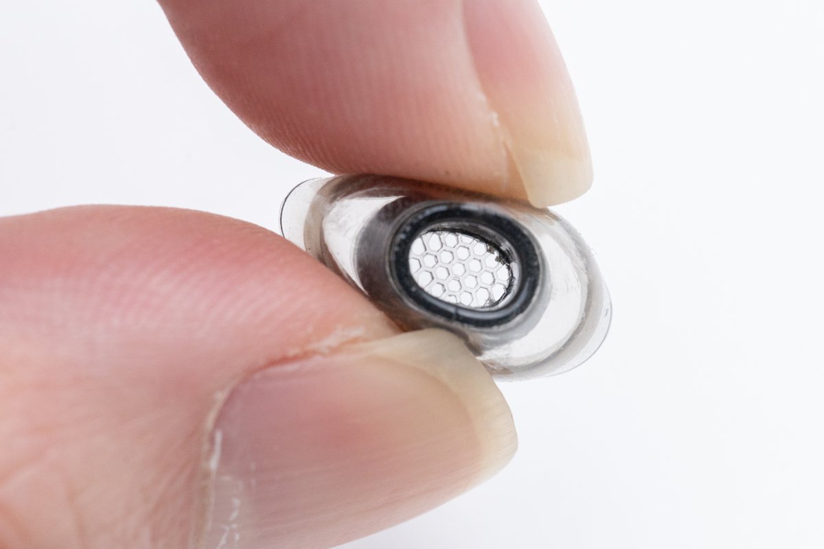 3つ目の新技術は、TPE素材で一体成型した「12Hヘキサゴンフィルター」。従来モデルに搭載していた「ハニカム構造フィルター」を発展させたもので、六角形と複数の幾何学形状を組み合わせた構造により、異物侵入の防止と音響伝達の最大化を両立するとしている。